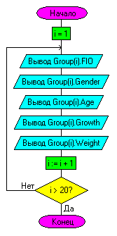 Пусть в группе 20 человек. Нам нужно вывести информацию обо всех студентах. Алгоритм будет выглядеть так: